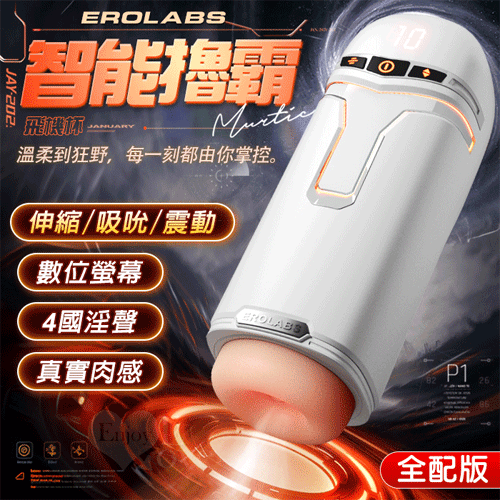 EROLABS 擼霸全配版 ‧ 智能伸縮/吸吮/震動/語音 緊實肉感自慰鍛練杯﹝液晶數碼9頻伸縮X9頻吸吮X9強震+4國淫聲+耳機﹞白色品號:NO.595030