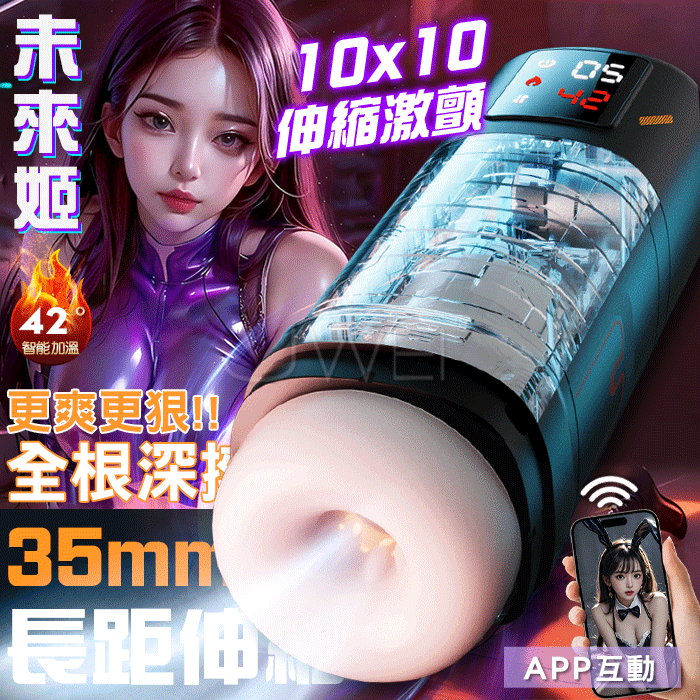 未來姬.10x10段伸縮激顫 3D肉感恆溫加熱屏顯智能飛機杯【黑色APP款】