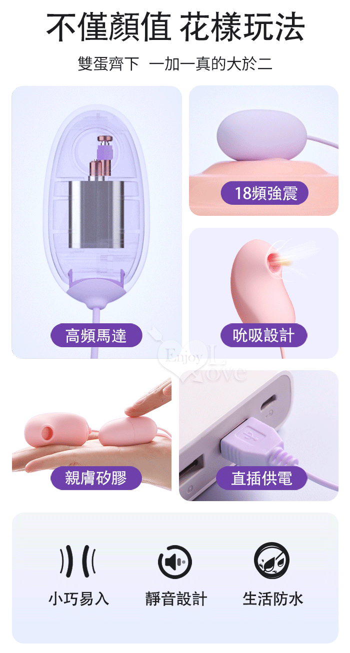 ROSELEX 勞樂斯 ‧ 小魔圓吸雙蛋 USB直插供電款﹝吸震陰乳+入體快感+18頻調控+雙邊可獨立控制﹞粉