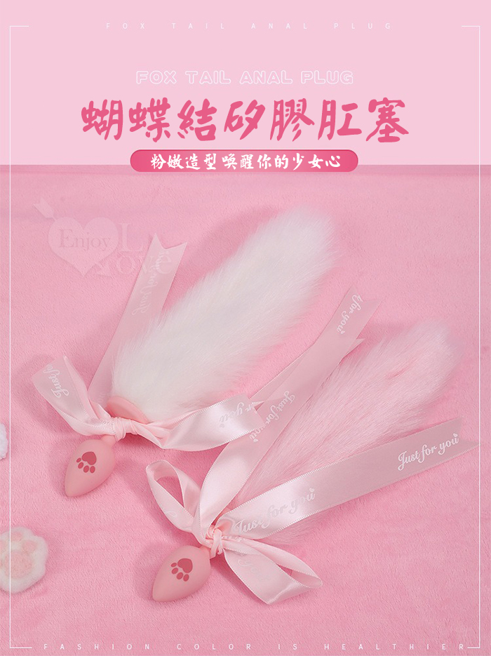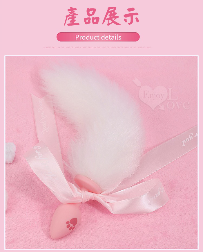| 激性扮演 ‧ 蝴蝶結狐狸尾巴 可愛猫爪印親膚矽膠肛塞﹝白色﹞