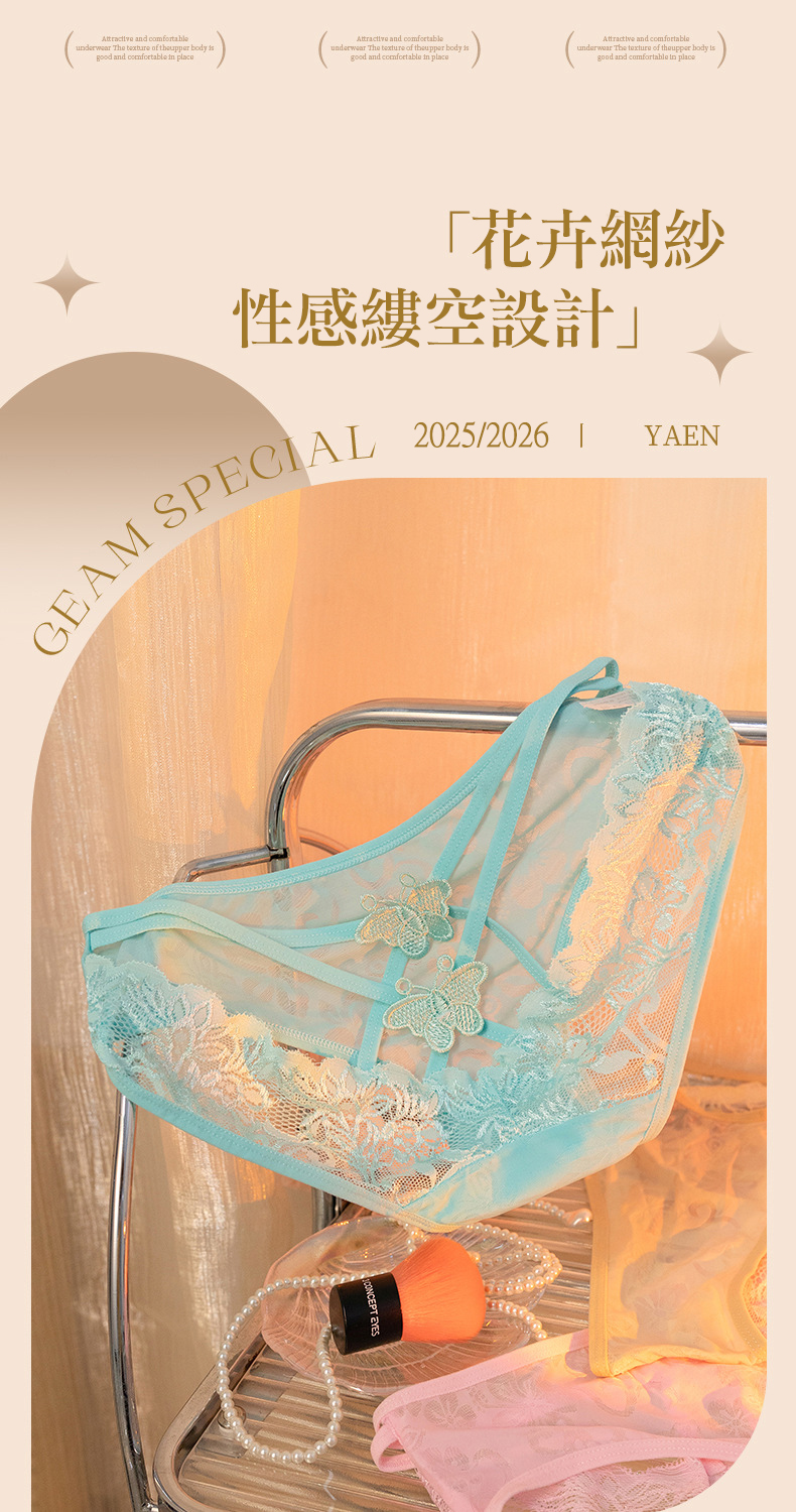 | 性感屁股蛋蕾絲內褲【M】性感半透網紗內褲 後背鏤空細帶蝴蝶三角褲