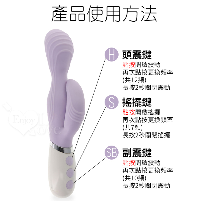 | 日本NPG.やわらかバイブ 肌感触 12頻頭震+7搖擺+10副震多功能柔和按摩棒-紫
