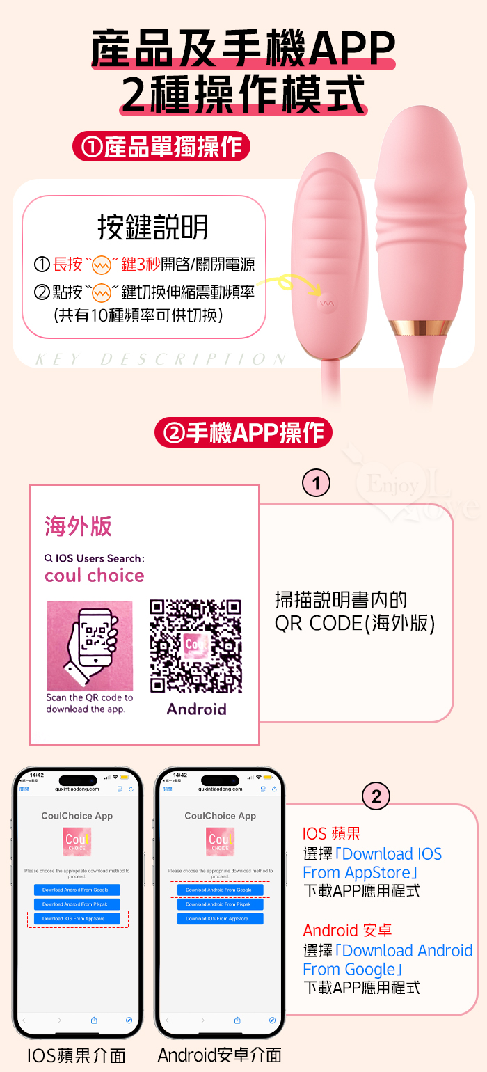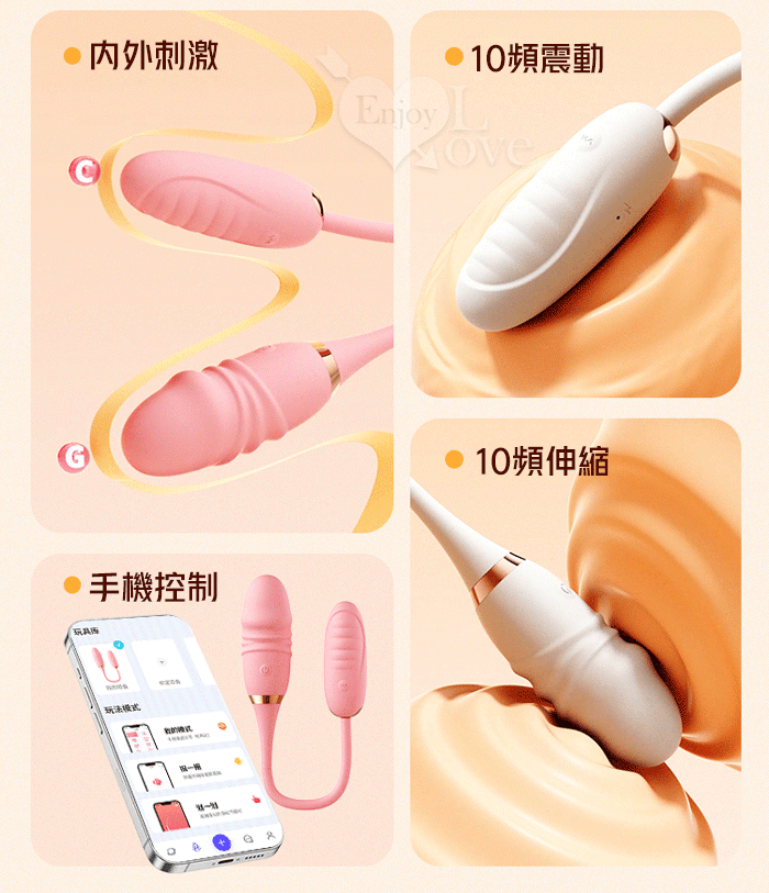 勞樂斯 ‧ 双子伸縮爆震跳蛋棒組合~邊震邊頂/10調頻/入體內外共爽/手機APP﹝具兩種操控模式﹞粉