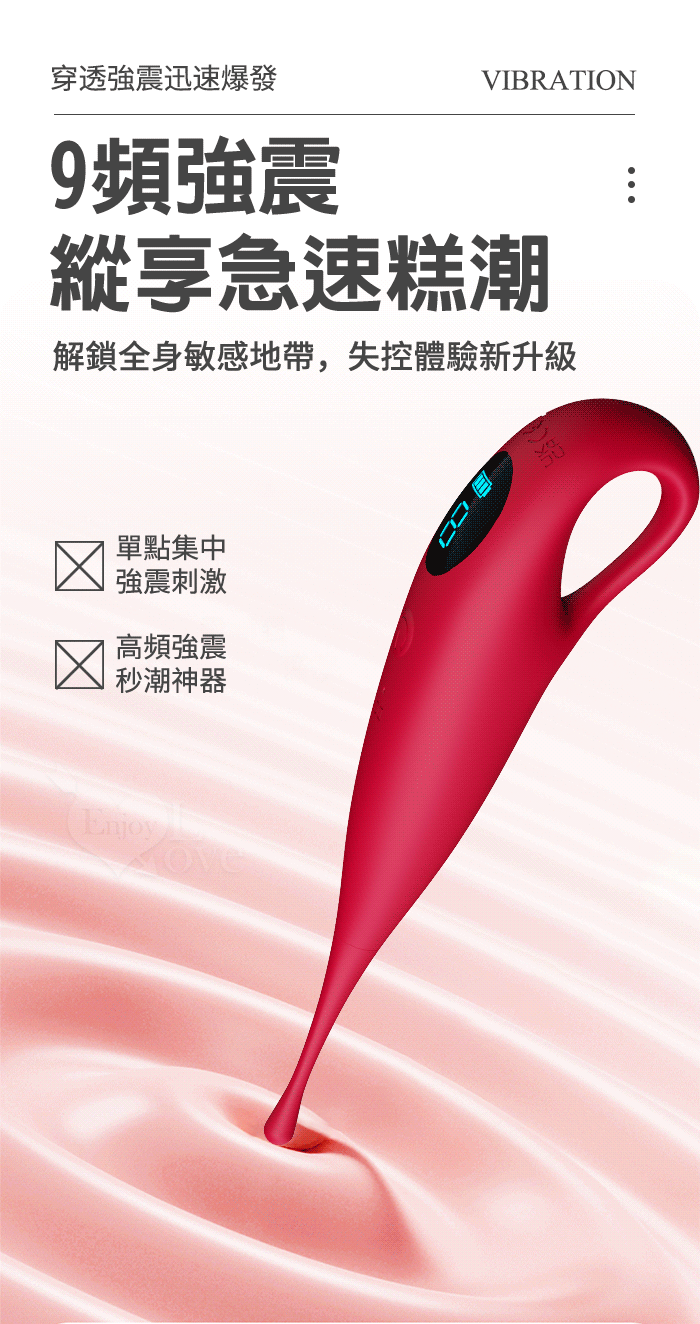 主要功能:9頻聲波高頻震動,液晶顯示刺激12,000根神經,雙頭套帶來多種花樣玩法