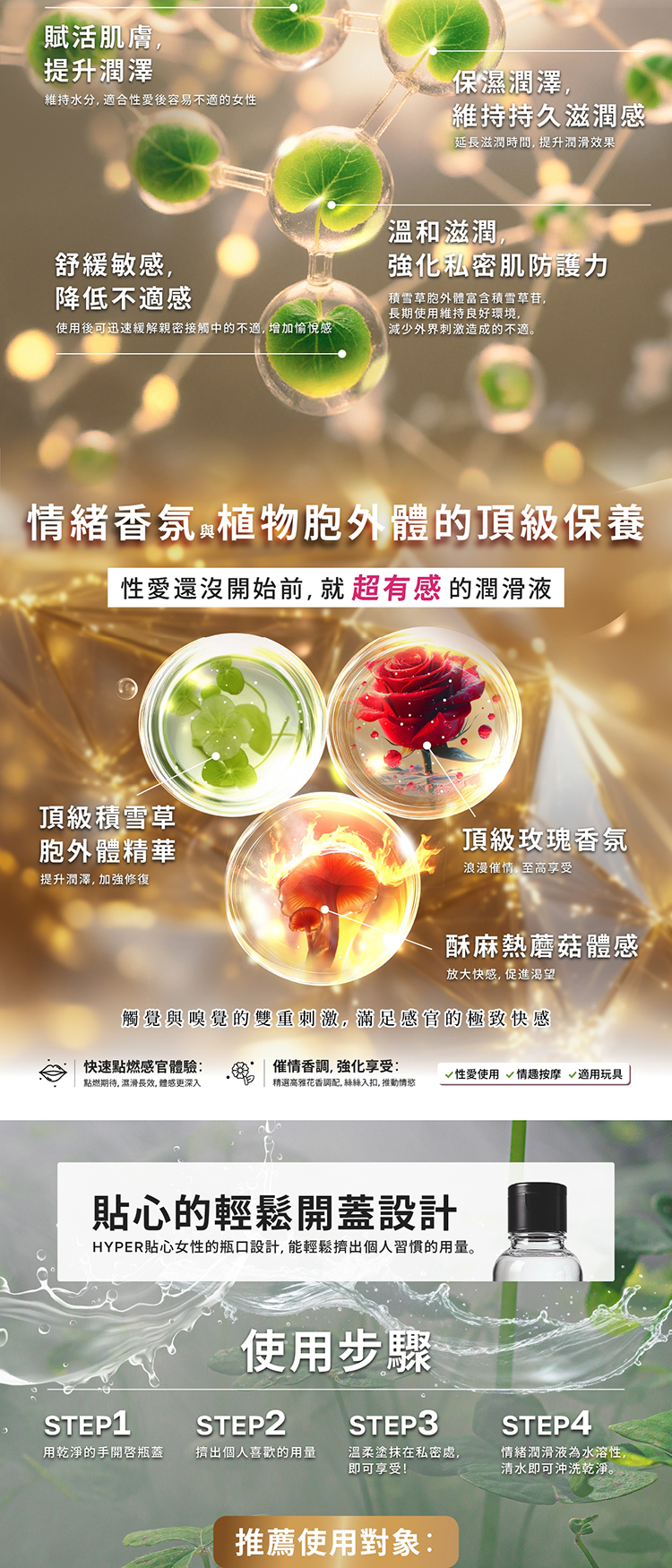 用途與使用方法:滋潤愛侶性愛,可搭配情趣玩具使用。