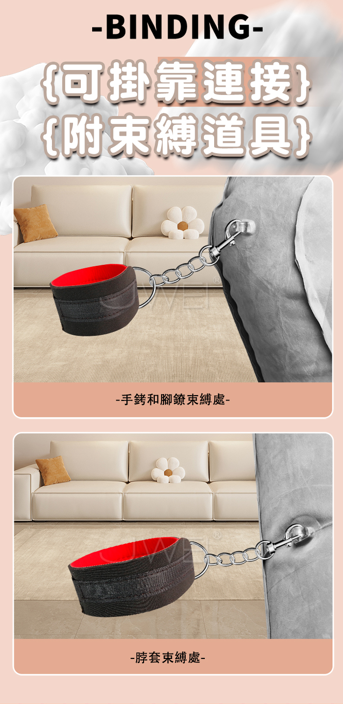 束縛氣墊床.束縛手/腳/脖銬+黑色輕柔植絨彈力性愛床墊【附贈電動打氣泵】