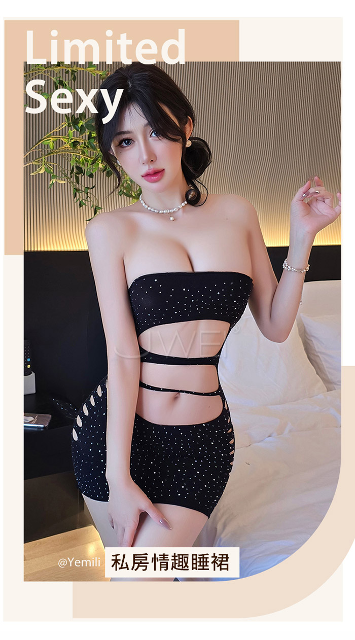 | 極光閃耀.低胸平口閃鑽挖空露腰性感包臀網衣
