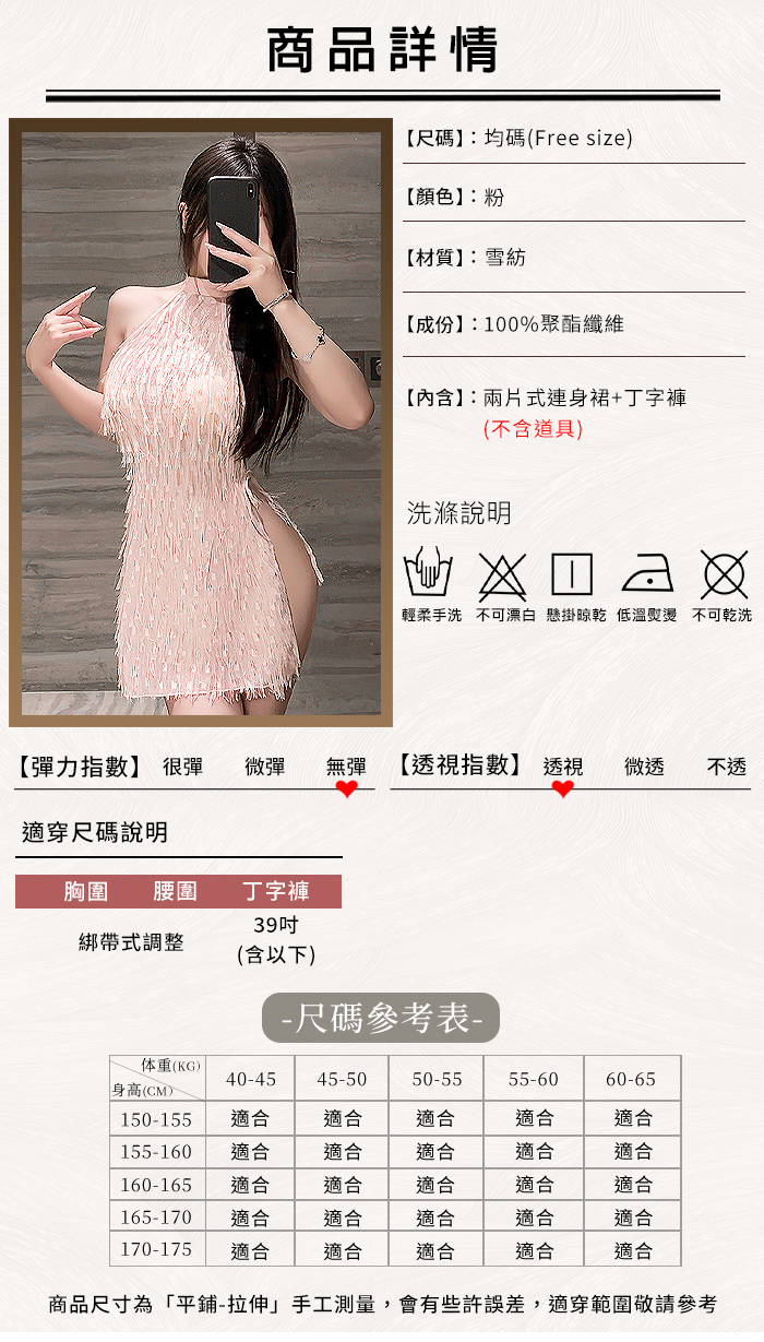 2.基於保障消費者個人衛生,情趣衣物類恕不接受退換貨,如為商品本身暇疵,接受三日內換貨,請勿試穿。