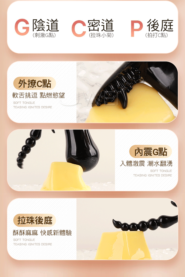 | 欲逗.10段變頻強震 三洞齊攻拉珠毒龍舌舔撩撥後庭按摩器【透明遙控款】