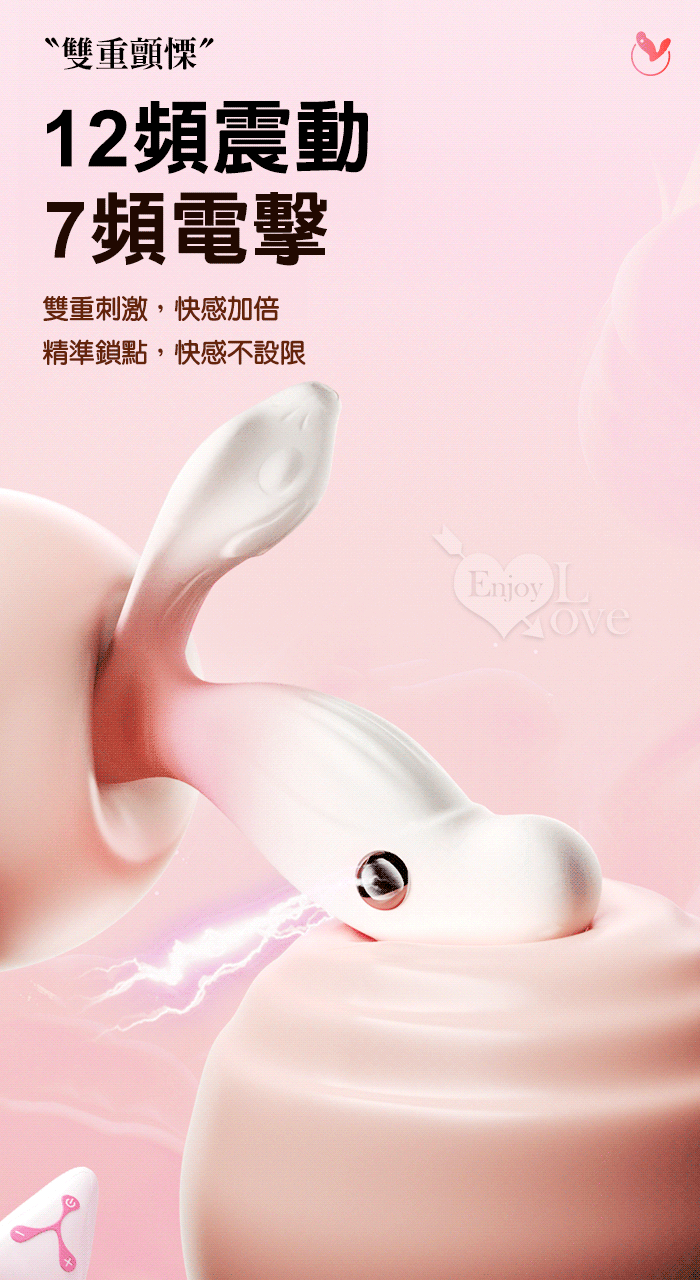 YEAIN夜樱 ‧ 松鼠 7頻顫電觸感X12頻震動起舞~3點齊發遙控穿戴按摩器~時尚粉白漸色調