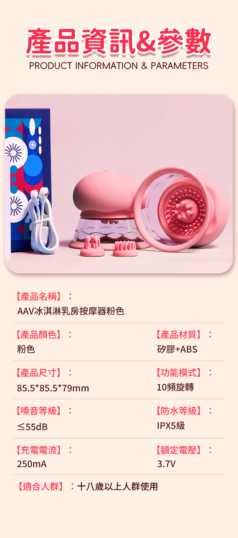 AAV 冰淇淋.乳房吸吮10頻按摩器 女用乳頭刺激挑逗 胸部按摩旋轉(一對裝)