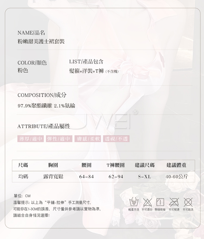 2.基於保障消費者個人衛生,情趣衣物類恕不接受退換貨,如為商品本身暇疵,接受三日內換貨,請勿試穿。