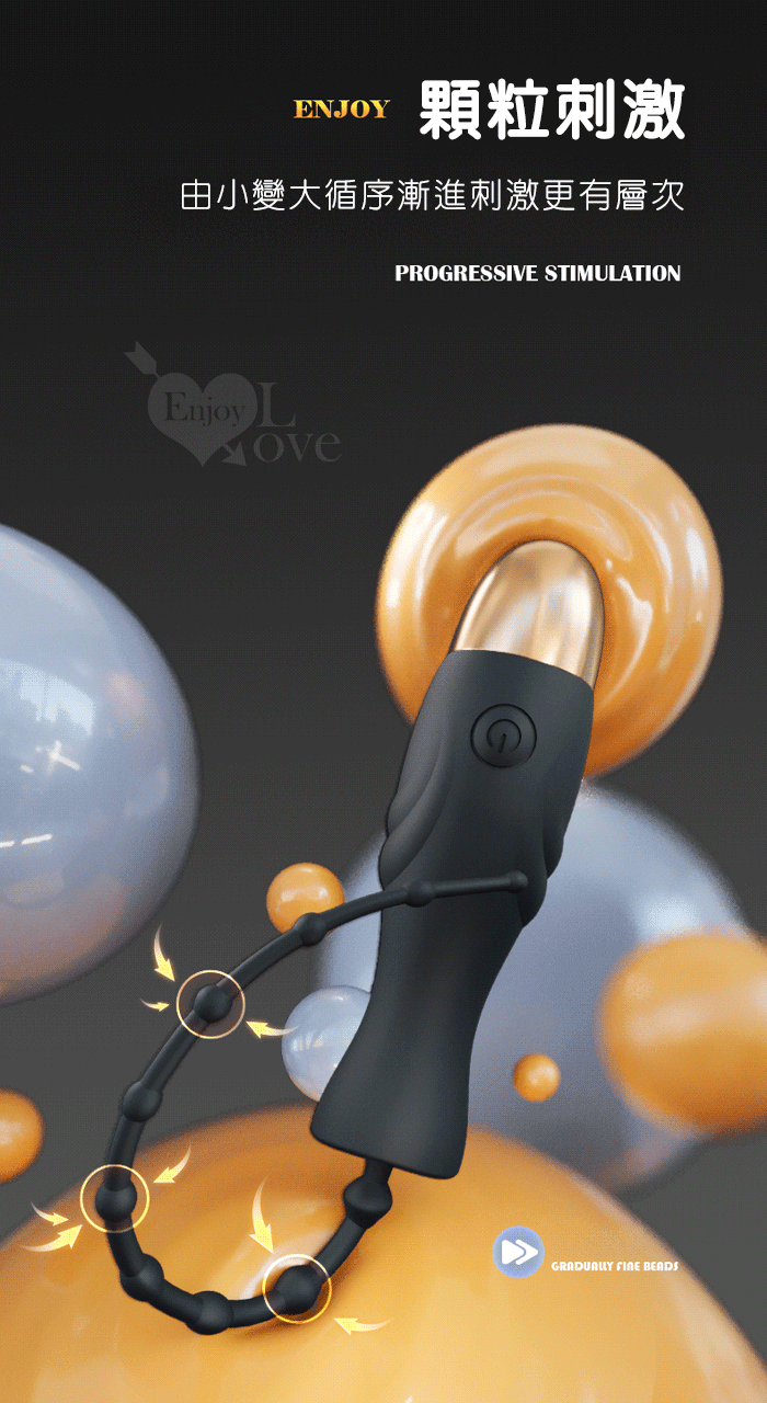 ENJOY 10細珠馬眼棒~輕鬆觸腺10變頻震動深度拉珠刺激 - 可插入15公分