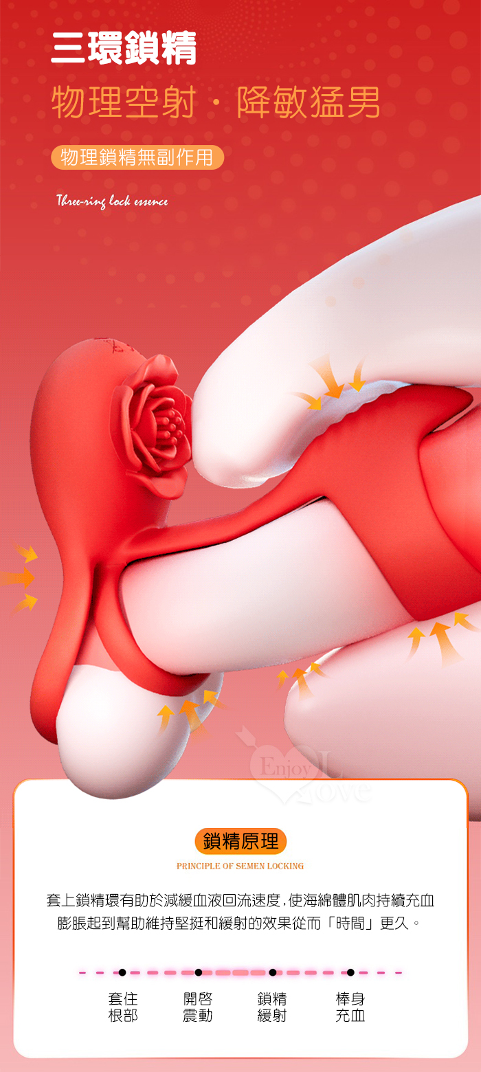 YUNMAN 云曼 ‧ 玫瑰內外雙震加強套環﹝無線遙控/男女共爽/10頻双強震/3環鎖精固蛋/花瓣撩撥蜜豆/矽膠舒適﹞