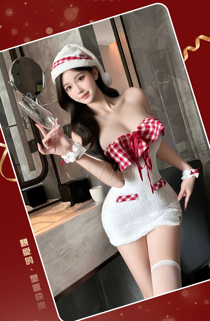 ►您現在的位置:首頁>夢夜覆雪.紅白格紋平口裹胸白色毛絨修身包臀連身裙套裝【帽子+連身裙+手環】