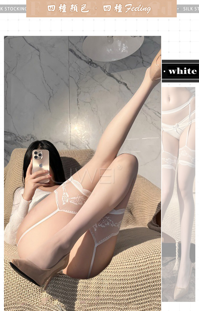 | 魂牽夢縈.御姐風蕾絲吊帶一體絲襪【白色】